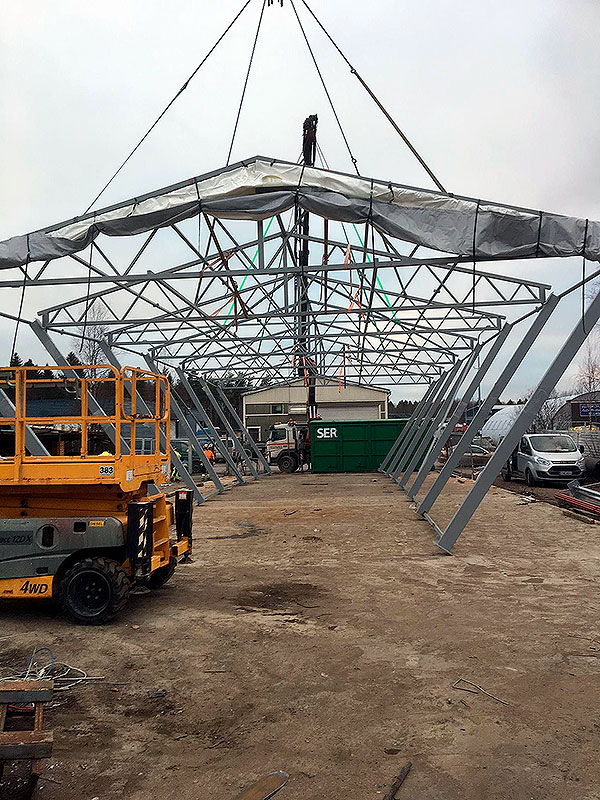 Olemme keskittyneet teräsrunkoisten PVC:llä katettujen hallien korjauksiin, siirtoihin ja uustuotantoon.